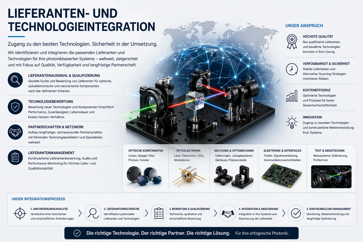 - Auswahl und Qualifizierung spezialisierter Photonik-Lieferanten
