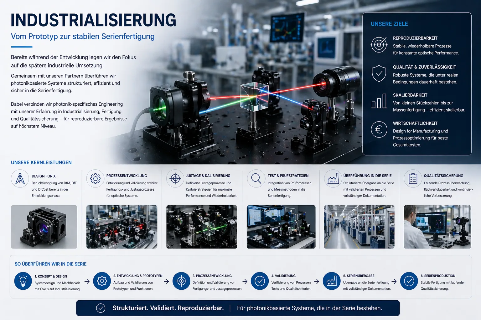 Gemeinsam mit unseren Partnern überführen wir photonikbasierte Systeme strukturiert in die Serienfertigung.